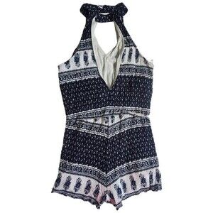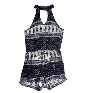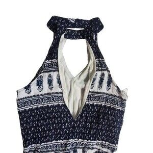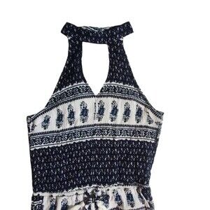 Very J Blue and White Sleeveless High Neck Shorts Romper Size S