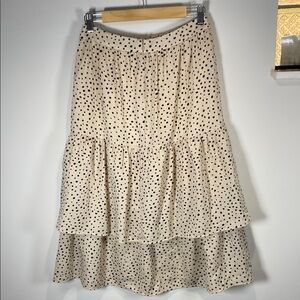 Very J Cream A-Line Tiered Polka Dots Midi Skirt