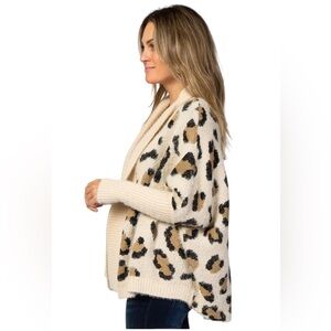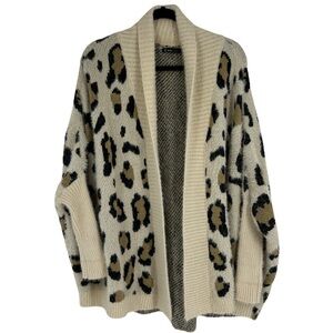 Very J Cream Animal Cheetah Print Knit Drape Cardigan SZ L NEW