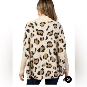 An animal print, eyelash knit cardigan featuring long ribbed dolman sleeves and a ribbed drape collar.