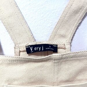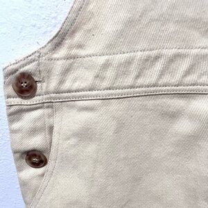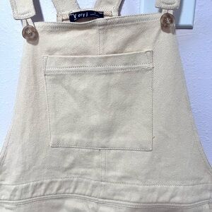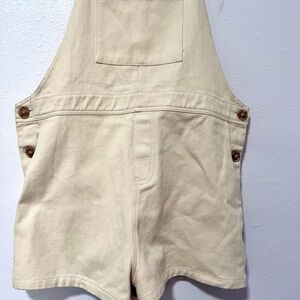 Preowned cream jumpsuit with buttons on straps. 4 pockets.