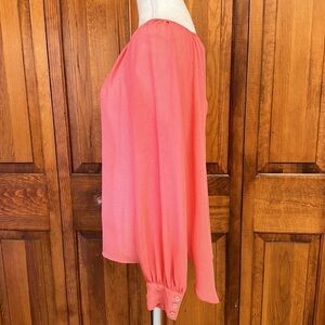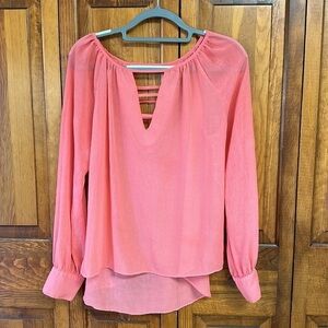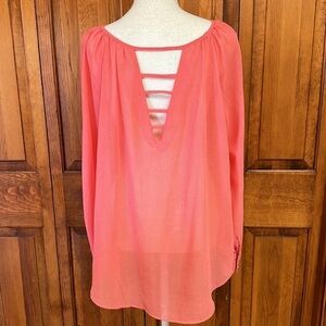 Very J Deep Peach Semi-Sheer Rounded V-Neck High-Low Long-sleeved Dress Blouse L