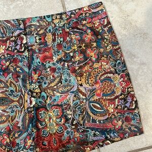 Gently worn Very J Faux Leather Boho Print Paisley Shorts women's size large. 100% polyurethane, fully lined, mid-rise waist, zip fly with tab closure at waist, hip pockets, rear slash pockets, fun boho paisley floral print. Perfect for fall with tights and boots! Offers accepted!