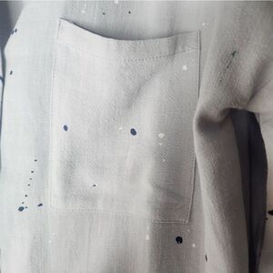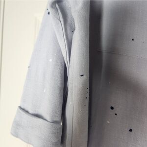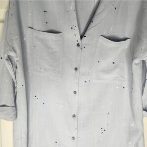 Very J L LINEN Blend Grey 3/4 Cuffed Sleeve Pockets Buttons Up Women’s Top Shirt