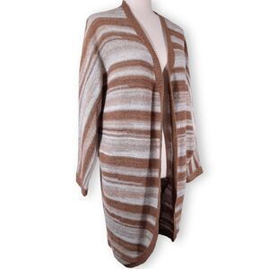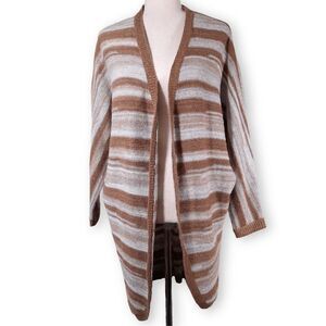 Very J Long Kimono Cardigan Size Medium Open Front Southwest Stripes Neutrals