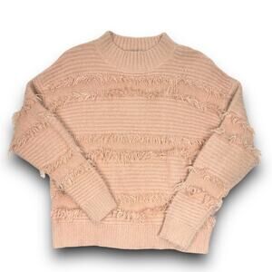 Very J Pink Shaggy Fringe Knit Sweater Mock Neck Drop Shoulders Boxy Size Small