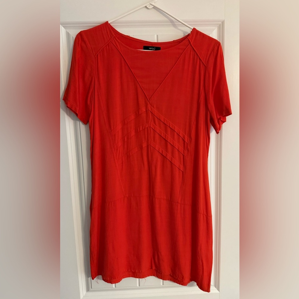 Chic red mini dress with short sleeves. Perfect for casual outings.
