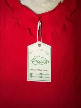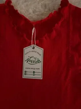 Very J Red Ruffle-Edge Ribbed Tank