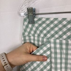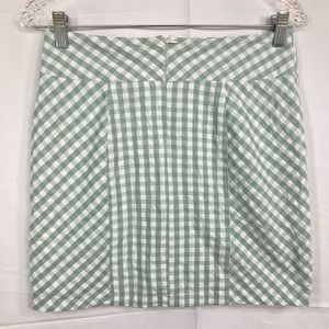 Very J Skirt Womens Sz S Sage Green White Gingham Back Zip Pencil Mini Pockets