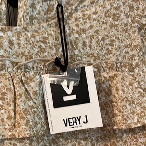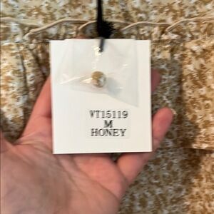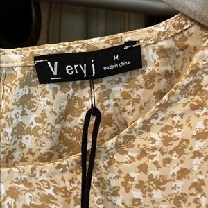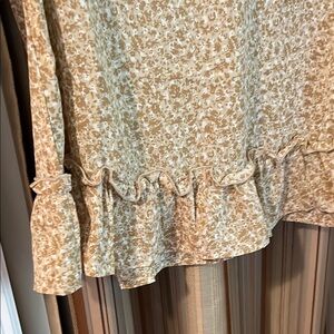 Tan ruffle detail floral blouse. New with tags. (Pc)