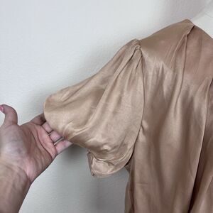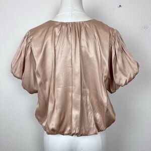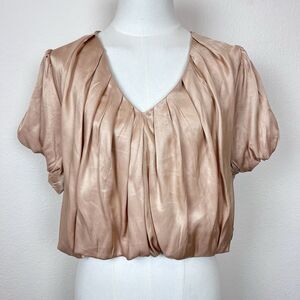 Very J Top Womens Large Cropped Satin Puff Sleeve Bubble Hem Blouson Beige
