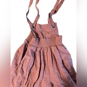 Very J Women’s Linen Blend Camel Brown Jumper Wide Leg Jumpsuit Size Small