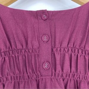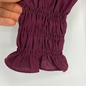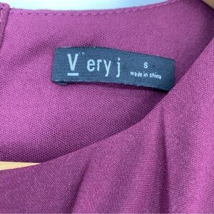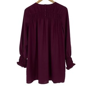Very J wine burgundy A line shift dress has long sleeves with gathered detail on wrist & chest and it buttons in the back. Fully lined. Cute and great pre-owned condition. See photos for details and measurements. Women's size small.