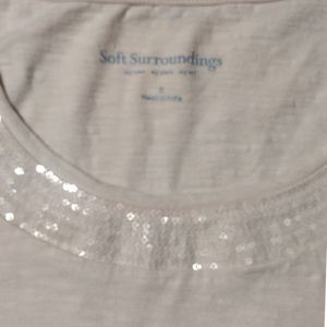 Very Light Pink Long Sleeve Top Soft Surroundings Size Small Detail Accent Neck