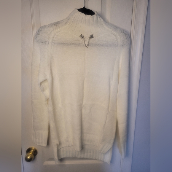 Very Light White Turtleneck Sweater with Vintage Sweater Clips Included!