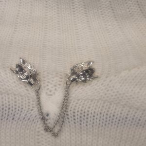 Elegant light-weight white sweater with vintage removable sweater clips. Unknown size but Sweater has lots of stretch. Measuring 18 1/2 to 19 1/2 (stretched) Pit to pit. Could easily fit a M.