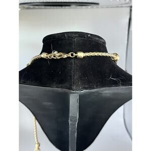Very Long Gold Tone Necklace with Bows and Simulated Diamonds
