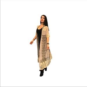 Very Moda Long Duster Cream Lace Embellished S/M Medium