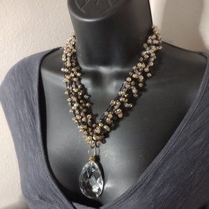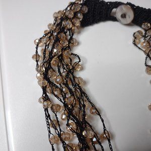 Very Pretty 19 Inch Black Fabric And Orangish Glass Bead Necklace