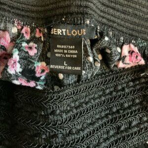 Very Pretty Flowy High-waisted Wide-Leg Floral, Polka Dot with black lace accents Palooza-type Pants. Super comfy. Casual Dress. 100% Rayon.