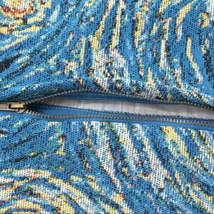 Materials: premium jacquard woven tapestry fabric (410gsm polycotton), pockets @ front, ‘zig-zag rope’ bicolor-braided drawcords (elastic waist), detachable/removable legs (via antique-brass custom-molded zipper), embroidery @ front & back +++ transparent and white relief 3D silicon PVC sewn appliqué/patch +++ lining’s composition: 100% Supima cotton ~
