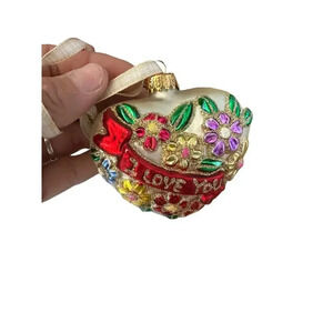 Very Rare Classic Elegance Multicolor Floral Embroidered I Love You Ornaments