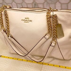 Very Rare Extra Large Coach Kelsey Biege Pebbled Leather Shoulder Bag.