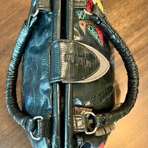 A vintage lover's dream! The product is a very rare vintage "Renaissance" patchwork purse shoulder bag, made in Korea. The bag is designed for women, with an interesting pattern and multicolored exterior made of leather with a black lining. It features black leather handles/straps, making it a stylish and unique accessory for any outfit. The shoulder bag style offers both functionality and fashion, making it a versatile addition to any wardrobe and a stand out piece on it's own.