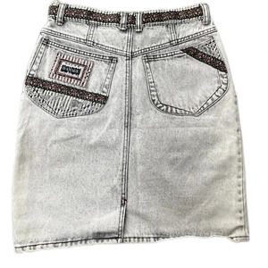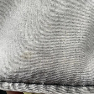 Acid ashes black denim with pink stitching and floral accent ribbon.