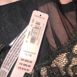 Crisscross laces, sheer mesh and floral lace... it all adds up to sexy. With attached garters