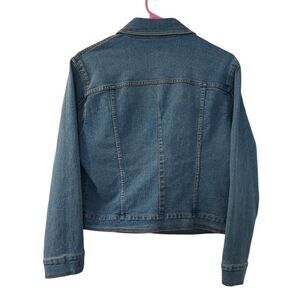 Very Vera Cropped Embroidered Jean Jacket Size Large Petite