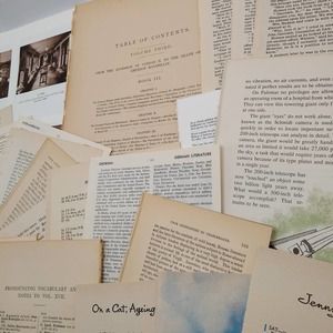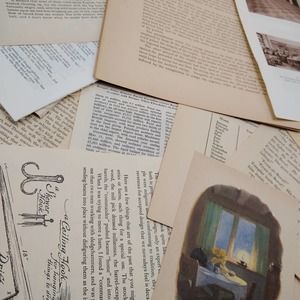 30 book pages from vintage books. You will receive an assortment of pages from multiple books. These pages range in age from antique (before 1922) to slightly vintage (1990s) with most falling in between (1930-1960s). The newest of the pages have older images (circa 1920-1940s).