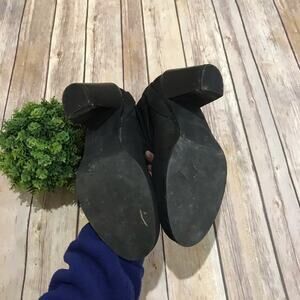 These boots are in great condition! See pictures for signs of wear. Black booties with buckle details in the sides. No size tag but fit like a 6-6.5. 11.4.22
