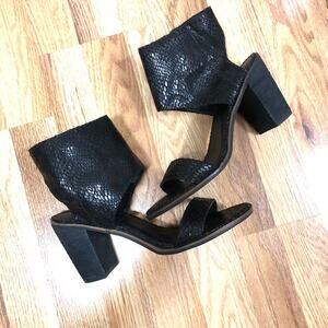 Very Volatile Black Snakeskin Stacked Heels Size 9