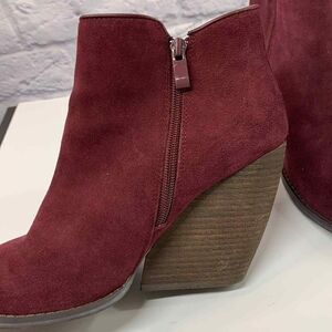 Very Volatile Bootie Womens 10 Wine Red Wedge Stacked Heel Boot