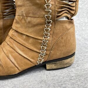 Very Volatile Boots Womens 6.5 Tan Brown Leather Riding Tall Cut Out