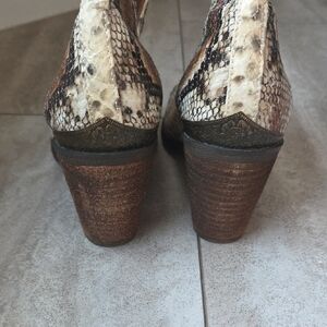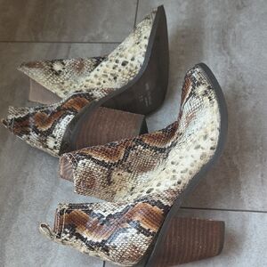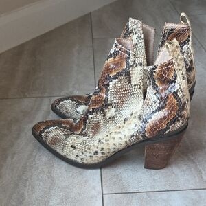 Very Volatile Brown and Cream Ankle Booties with Snakeskin Pattern