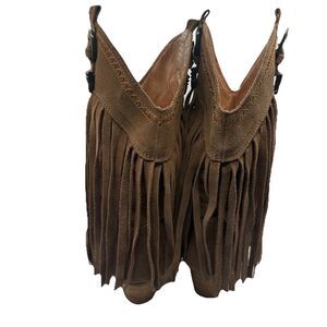 Very Volatile Hillside Fringe Cowgirl Buckle Western Boho Boots Tan Brown Size 8