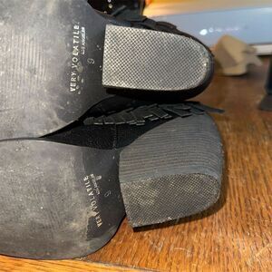 Keywords: Very Volatile, Khloe, fringe, ankle boots, black, women's footwear, high heel, block heel, PU material, leather tassel, zip closure, pre-owned, China, bootie style, size 9.