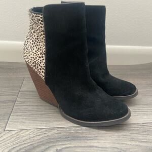 Very Volatile Leather Calf Hair Dotted Wedge Ankle Boots Western Boho Size 6