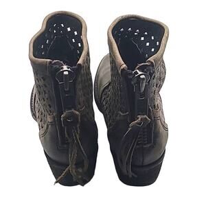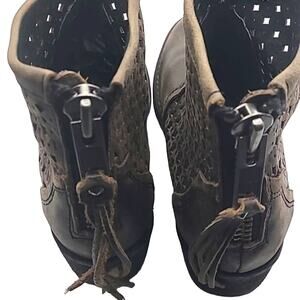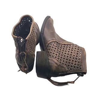 Very Volatile boots, women’s leather booties, distressed ankle boots, Western-style shoes, size 7M boots, rustic brown leather, boho chic footwear, perforated booties, fall boots, everyday casual boots