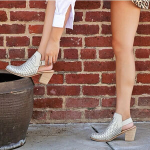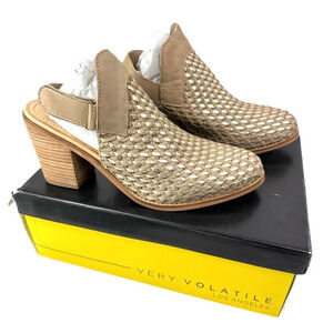Comfy and trendy heels that make a statement! The Sandara by Very Volatile features a wood heel and a velcro strap. Designed to standout, the genuine leather upper has metallic strips woven into the design. A padded leather sole makes these shoes super comfy.