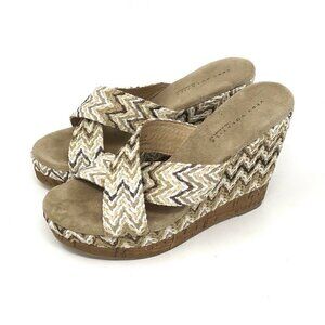 Very Volatile Los Angeles Wedge Platform Sandals Slides Chevron Brown White Cream Cork Straw