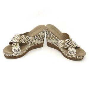 Very Volatile Los Angeles Wedge Platform Sandals Slides Chevron Brown White Cream Cork Straw