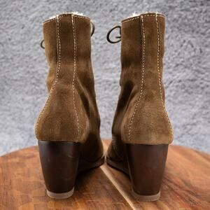 Very Volatile Wedge Suede Lace-Up Bootie Olive Women's Size 8.5 EUC