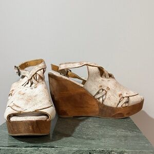 Step out in style with these chic white and brown wedge sandals. Perfect for any occasion, these shoes offer both comfort and elegance.