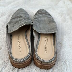 Very Volatile Womens Austin Pewter Champagne Studded Loafer Mule Shoes US 7