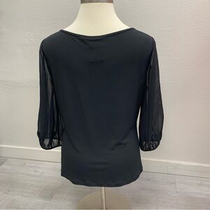 This gorgeous size 1x black sequin blouse is light weight and has sheer long sleeves. Perfect for a special occasion or a date night.
