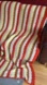 Cozy crochet blanket with vibrant red, yellow, and white stripes. Perfect for adding warmth and style to any room.