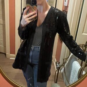 Very cool vintage Lew Megram New York Black sequin duster jacket blazer. Super cool.